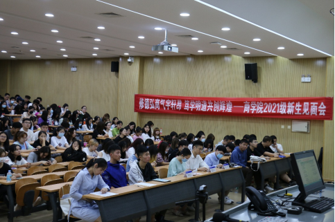 会议之前,2018级侯卓作为老生代表进行经验分享,向新生们分享了凝练出的学习经验和生活态度,希望新生可以在大学的生活中不断开拓进取、提升自我,尽早在各种考验之下绘就出自己的精彩人生。2021级新生代表工商管理实验班王雨晴同学也代表新生对学院表达了感谢和对老员工活的憧憬和期待。