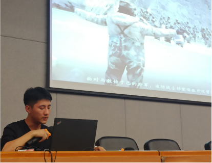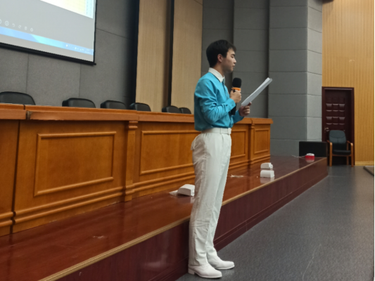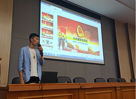 七一重大活动宣讲团成员代表,永利3044noc2019级工商管理专业任贺,讲述“我在天安门现场那一刻”。任贺同学带大家一起回忆了诗歌《海燕》,并生动的讲述了训练与七一当天的情形,“先辈们许我们山河无恙、国泰安康,我辈定将义不容辞,继往开来”是他的真挚情感,“请党放心,强国有我”的誓言回响在每一位同学耳中,让每一位与会同学都产生了共鸣。