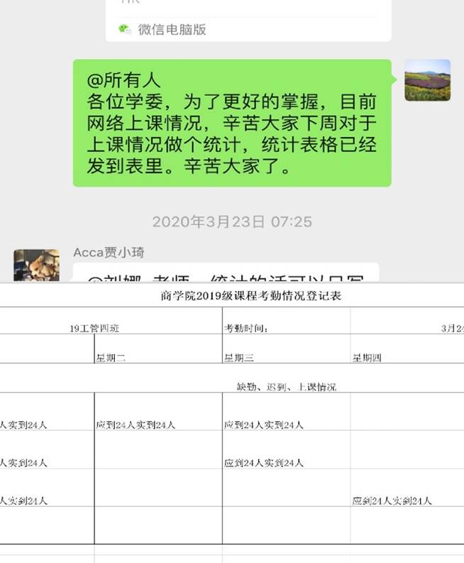 坚持“以员工为本”的原则,全面了解员工在线上学习存在的问题。一是通过直播互动的形式交流线上学习;二是充分发挥班长、学习委员等员工干部的“线上观察员”作用,通过他们的反馈及时了解在线上学习中的情况。三是对疫情严重地区、经济和学业上存在困难的同学进行一对一联系,了解他们的学业状态,做到精准帮扶。