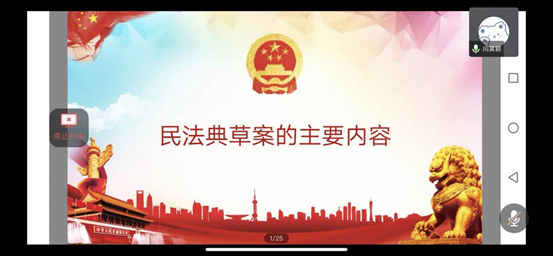 通过本次理论学习,大家深刻的学习了民法典和两会的内容以及重要意义明白了作为新生代的我们要将个人奋斗目标与社会发展、国家前途相联系,不忘初心,不负初心之旅,勇担使命、砥砺前行,紧跟时代步伐,昂扬斗志奋力实现中国梦。