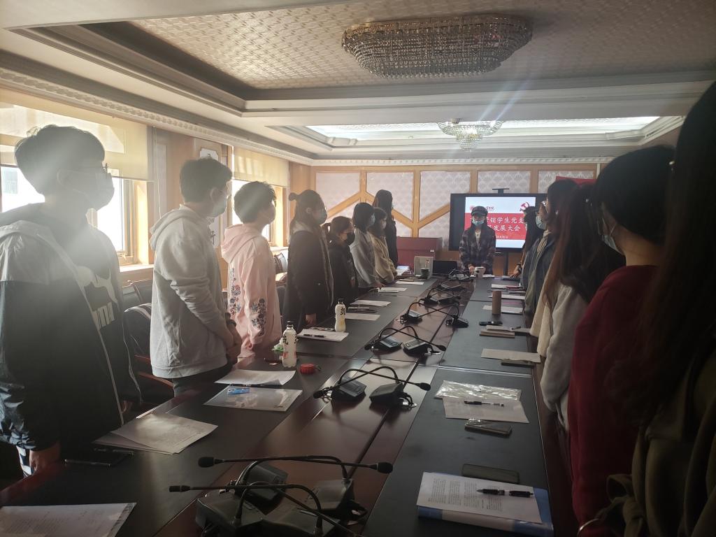 大会伊始,刘娜老师介绍了党员发展大会议程,宣布到场正式党员人数。随后,张香宁等17名发展对象依次向党支部进行了汇报,包括对党的认识、入党动机、个人学习生活情况、今后努力方向等。入党介绍人全面客观的对发展对象情况进行介绍,肯定优点,指出存在问题和需要改进的地方,与会党员也充分发表了意见。通过无记名投票的方式,一致同意17名同学发展为中共预备党员。最后,全体党员面向党旗在刘娜老师的带领下庄严宣誓。