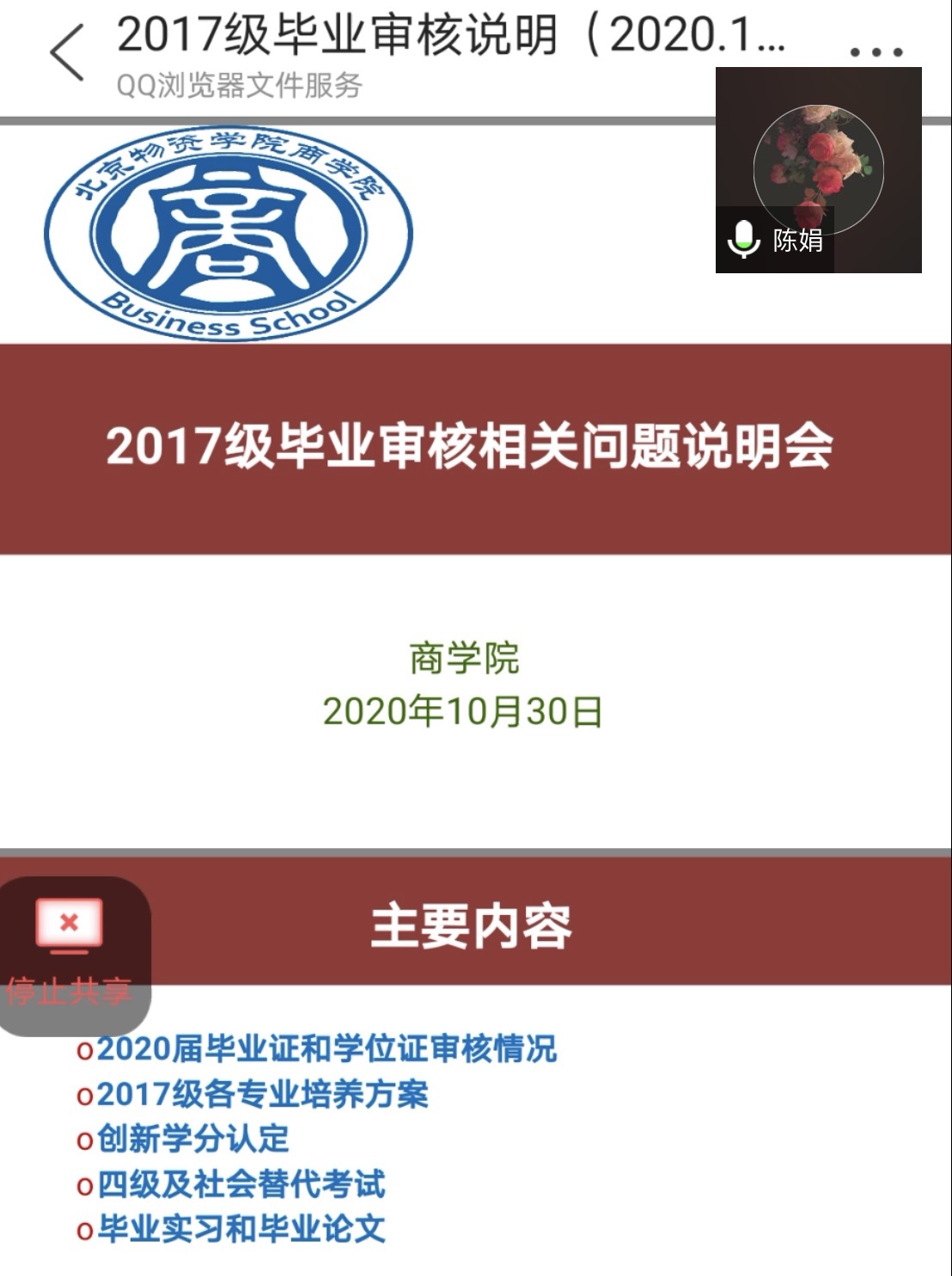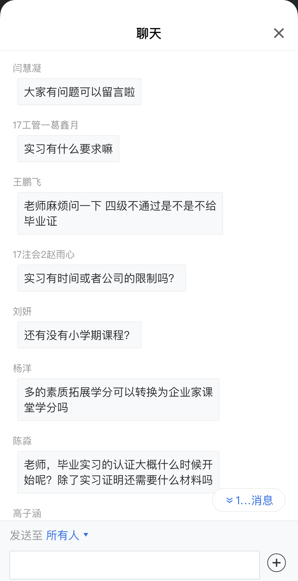 本次课程就毕业年级的相关问题进行了很有效的回答,两位老师不仅分享了自己的经验,也为同学们线上答疑,2017级的员工对毕业相关事宜有了全面了解,感谢两位老师的讲解、分享。