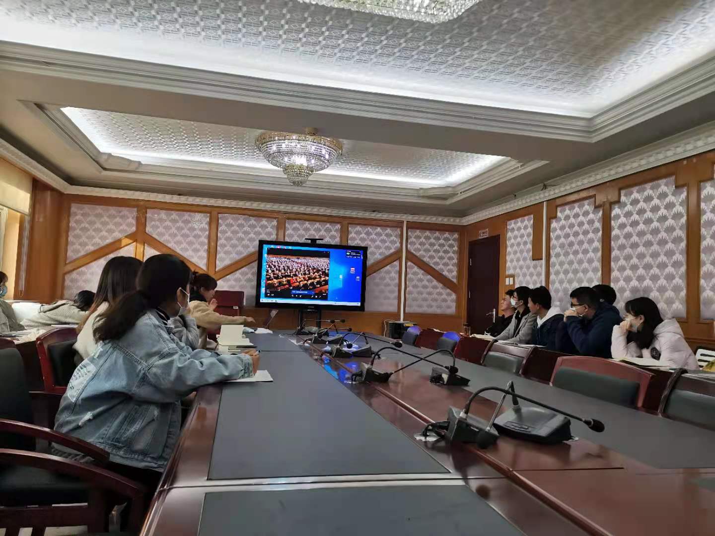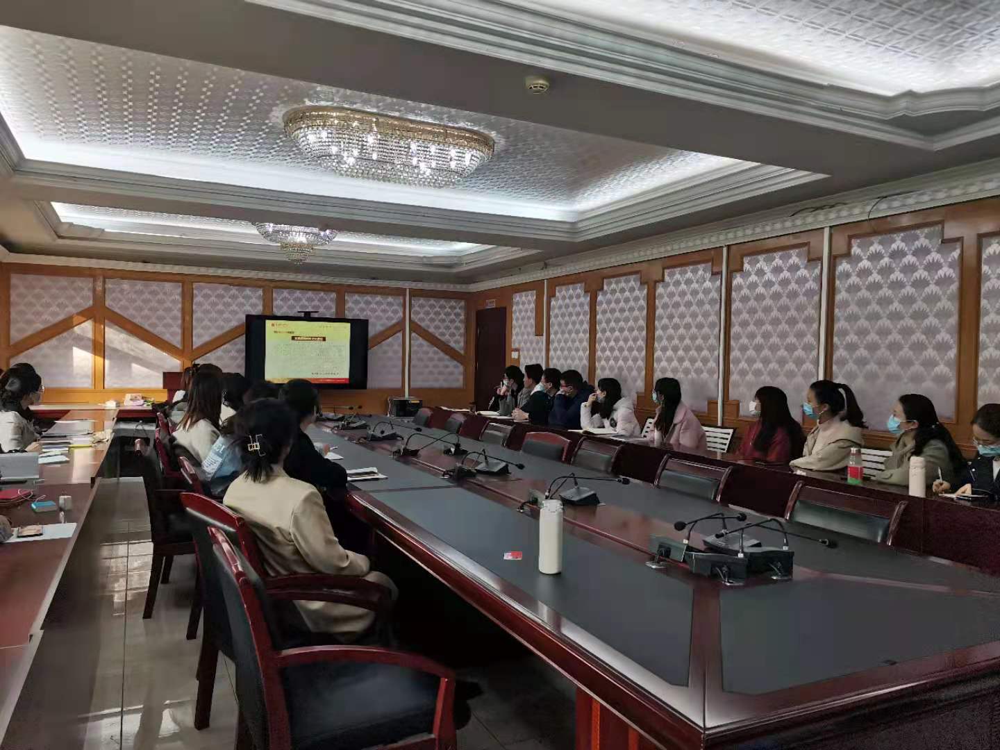 会议于下午15点准时开始,首先党支部书记王洋老师介绍了新任职的支部委员,分别是副书记赵梓涵,组织委员马楠、宣传委员朱昕瑶、纪律检查委员胡雪婷、党小组长孙萌萌。王洋老师对上届支委的工作表示肯定,并对新任支委的工作提出要求。