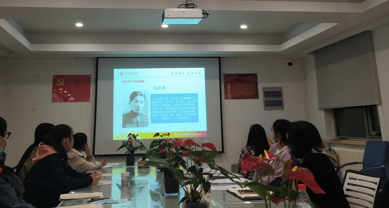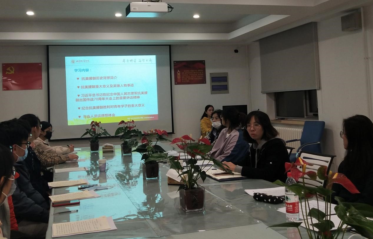 此次会议的主题是了解抗美援朝的历史,从中学习领会共产党人顽强不屈的伟大精神,牢记历史,不忘初心。并将这些精神运用到自己的学习生活与工作中,时时刻刻用共产党人的标准来严格要求自己,提升自己的政治觉悟与修养。
