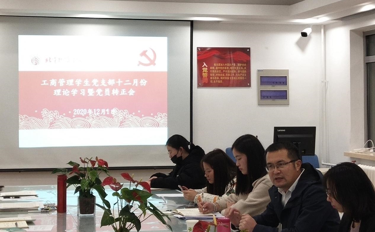 2020年12月1日,工商管理员工党支部在永利3044noc410开展理论学习会,校办主任刘世波参会解读十九届五中全会精神,并与同学进行交流座谈。此次会议由党支部书记陈霄英主持,支部全体党员到场。