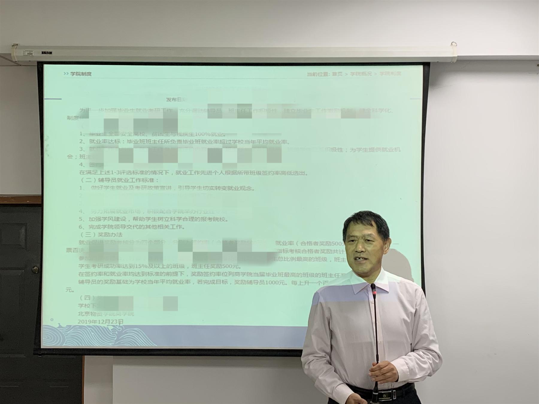 公司党委副书记陈霄英介绍了学院就业工作奖励办法,并对毕业年级班主任和毕业年级导师应做的工作进行了讲解。陈霄英强调,要及时关注员工学业情况、就业进展和思想动态,帮助解决实际困难,重点掌握“三困一少”员工情况,一对一提供就业指导。