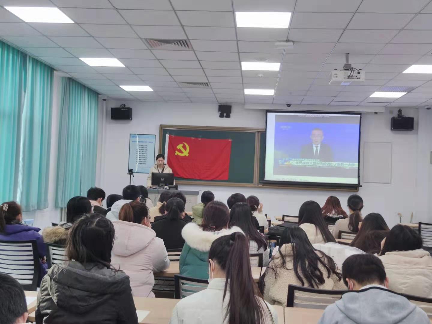 随后,支部书记王洋老师为大家播放《解读党的十九届五中全会公报》学习视频,大家一起观看了央视特约评论员杨禹先生对十九届五中全会精神的解读。