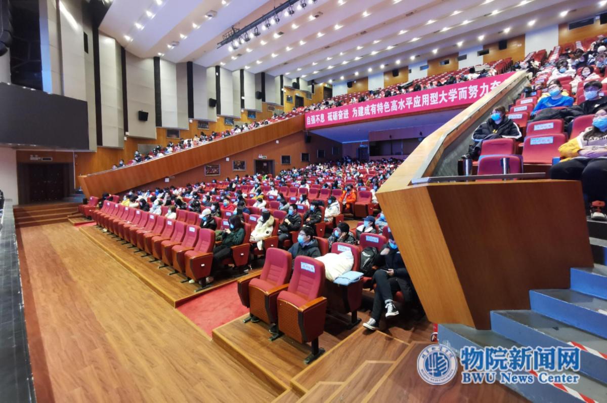 2020年12月11日下午,为传承物院精神,增强物院学子对学校历史发展的认识,公司党委副书记宋晓欣老师在运河剧院为永利3044noc2020级全体本科生作“物院精神的传承——物院和物院人”的形势与政策专题讲座。