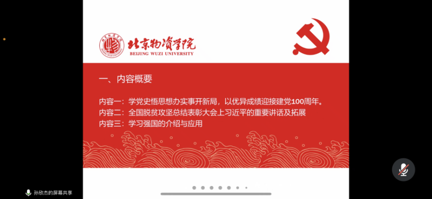 首先由员工党员孙欣杰带领大家对近期学习强国大事件进行逐一回顾。第一部分的内容是学党史悟思想办实事开新局,以优异成绩迎接建党100周年。孙欣杰同志结合习近平总书记在党史学习教育动员大会上的重要讲话为支部同学讲解学习党史的重要性和关键性。第二部分是深入学习全国脱贫攻坚总结表彰大会上习近平总书记的重要讲话。“这是中国人民的伟大光荣,是中国共产党的伟大光荣,是中华民族的伟大光荣!”习近平总书记在全国脱贫攻坚总结表彰大会上庄严宣告,我国脱贫攻坚战取得了全面胜利,完成了消除绝对贫困的艰巨任务,创造了又一个彪炳史册的人间奇迹。在孙欣杰同志在讲解下,支部党员们深感自豪,并纷纷表示要把个人的奋斗目标融入到社会进步,国家发展之中。第三部分是讲述关于学习强国的应用,学习强国是非常好的学习新思想、学习时事政治、学习党史以及党的理论的平台,大家要认真、充分学习。