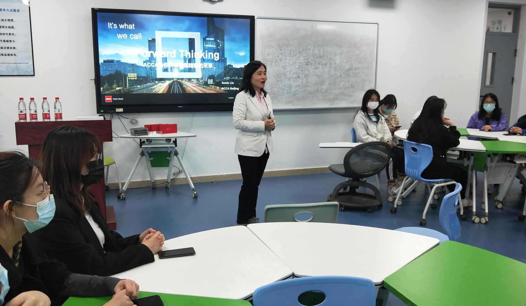 2021年4月14日下午,永利3044noc20级ACCA班在主教215教室召开“职业规划”主题班会。班主任张勤老师主持了本次班会,与会者还有永利3044noc教学副经理陈娟、ACCA项目负责人许海晏老师、东亚国际教育刘雪梅老师、ACCA北京代表处张莉娜老师和王春才老师。