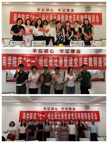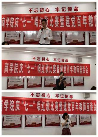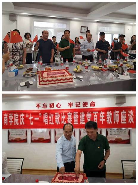 活动中,一首首振奋人心的红色经典,一段段慷慨激昂的红色旋律,点燃那激情燃烧的记忆,传唱着党光辉下的美好生活。《不忘初心》、《映山红》、《没有共产党就没有新中国》、《中国中国鲜红的太阳永不落》、《歌唱祖国》等经典旋律此起彼伏、高潮迭起。一曲曲深情真挚的歌声表达了老师们对祖国、对党、对人民的无限热爱和美好祝愿。台下的观众更是被红歌的动人旋律所感染,或和着节拍鼓掌,或跟随旋律轻唱。比赛结束后,与会老师们全体起立放声高歌《没有共产党就没有新中国》。在学院领导的带领下,学院老师们在镶嵌着建党百年的蛋糕前庆祝党的生日,向党许下最庄严美好的心愿。