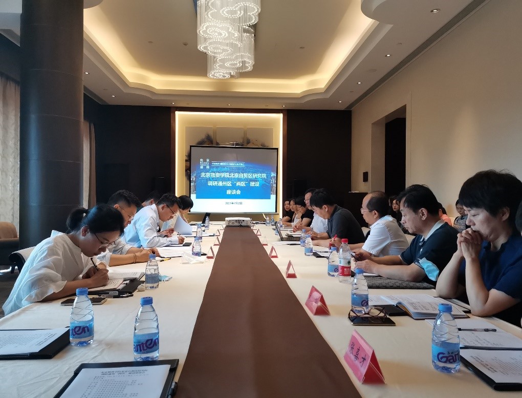 参观结束后,学校调研团队一行同通州区两区办负责同志进行了座谈交流。车欣薇副主任详细介绍了副中心两区建设背景、工作机制、取得的成就及当前的工作安排。科研处处长王成林教授结合学校十四五规划从学校顶层设计的角度介绍了学校对自贸区建设工作的总体规划,包括设立专门指南科研项目深入研究两区建设关键问题,培育专门的团队聚焦该领域进行深入研究,积极推动包括自贸区研究院等高水平科研平台的建设,同时积极推动教师和员工通过挂职锻炼、专业实践等方式参与通州区两区建设,参加通州区的服贸会专题活动,并希望以两区办为平台,积极对接入区企业,开展科学研究、企业培训、员工就业等多方面的合作。
