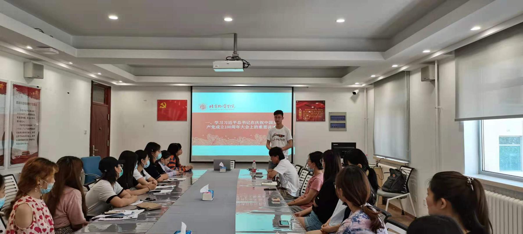 首先,全面回顾了中国共产党百年奋斗的光辉历程,深刻诠释党团结带领中国人民在百年奋斗中创造的伟大成就,深刻阐释伟大建党精神,号召全体党员努力为党和人民争取更大光荣。董海辰老师分享观看庆祝中国共产党成立100周年大会的所感所想,强调党支部的每一位都是为实现下一个100年奋斗目标的力量。并且以2017年感动中国十大人物黄大年的事迹,说明国家的发展应该与每一个人有关,都应该义不容辞投身到祖国的建设当中。