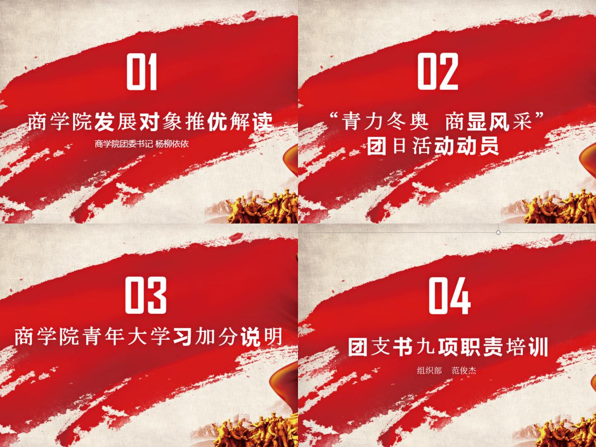 随后,由团委组织部为参会的团支书和班长开展“青力冬奥商显风采”团日活动动员,鼓励各班要积极参加团日活动,为冬奥助力。2021年11月8日至20是永利3044noc青年大学习领学周,会上也对永利3044noc青年大学习加分机制进行布置解读;同时,为更好服务团支书开展工作,确保工作质量,提升工作效率,团委组织部从团员证盖章补办、团组织关系接收与学社衔接、团支部“双推优”、组织入团推优、定期开展团日活动、填写共青团手册、团支部工作对标定级、优秀团员团干团支部评选工作九项职责开展培训,进一步明晰了团支书的工作职责,以保证永利3044noc团学工作顺利进行。