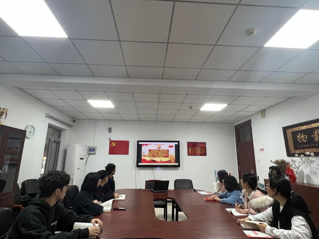 2021年12月2日下午,北京高校学习宣传党的十九届六中全会精神师生宣讲团首场报告会线上开幕,公司党委组织师生在线下与线上同时开展学习活动。公司党委副书记陈霄英、全体辅导员及部分员工党员代表共同在402会议室观看,各专业员工线上同步观看报告会。