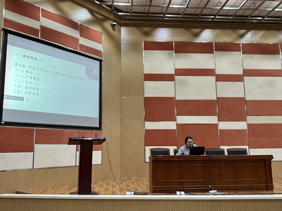 2020级辅导员助理葛鑫月带领大家重温了《员工手册》中关于考试作弊及诚信违规的相关事项,就学校诚信考试要求、纪律处分规定、无法取得毕业证、学位证的情况等进行解读,并从诚信网络、诚信资助的要求鼓励同学们遵守校规校纪,了解高校资助政策,让征信意识和金融风险防范意识入心入脑,增强法律意识。