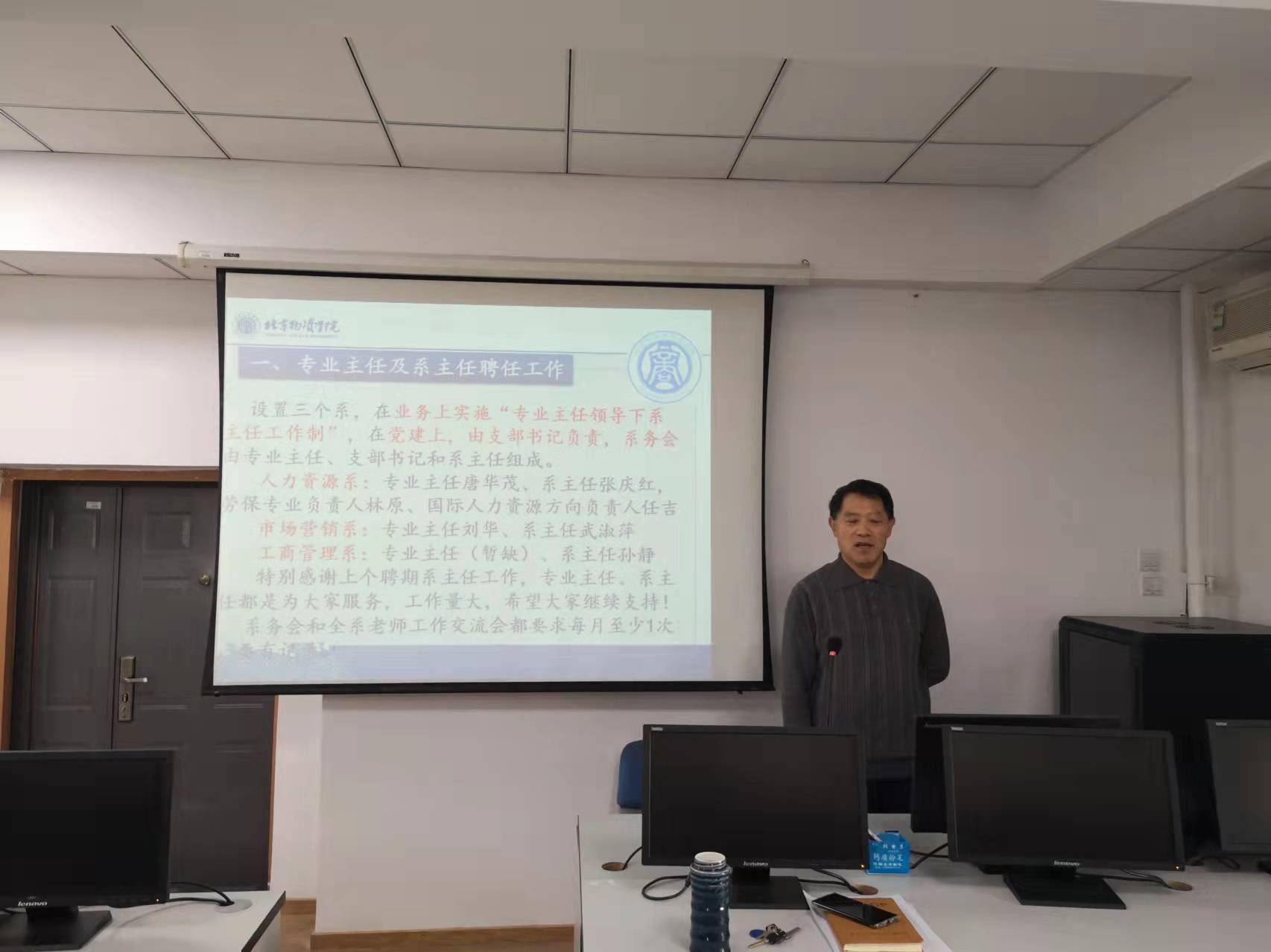 魏国辰书记首先宣布任命了学院专业主任、专业负责人和系主任的聘任结果:经过永利3044noc党委会讨论决定,任命唐华茂为人力资源系专业主任、刘华为市场营销系专业主任、林原为劳动与社会保障专业负责人、任吉为国际人力资源管理专业负责人、张庆红为人力资源系主任、武淑平为市场营销系主任、孙静为工商管理系主任。他对上一届系主任的工作表示感谢,同时希望各位老师支持各系新的负责人的工作,努力把公司各项工作做好。魏书记接着宣布了永利3044noc新一届工会委员会和教代会执委会名单。新一届工会主席王洋,副主席李晓晖,委员:闫俊、孙静、沈云、祝映莲、董海辰。新一届教代会执委会主席李晓晖、教代会执委会委员:王洋、吕波、刘华、李玉珠、李燕荣、魏国辰。他对当选的以为委员表示祝贺,并希望他们在接下来的工作中继续努力,为学院发展多做贡献。