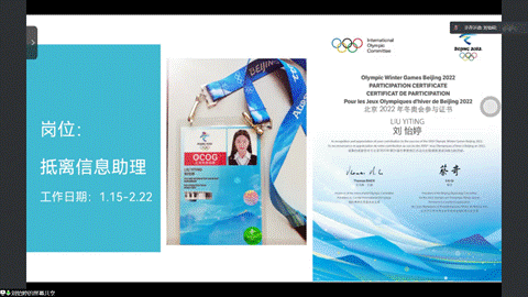 2022年3月28日,伴随着冬(残)奥会志愿者们陆续完成工作,回校进行健康监测,我们邀请到梁源瑞、刘怡婷和杜慧敏同志带来冬(残)奥会志愿分享,她们就工作岗位、活动经验、志愿感悟等多方面介绍自己的冬奥之行。