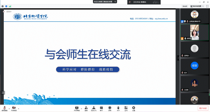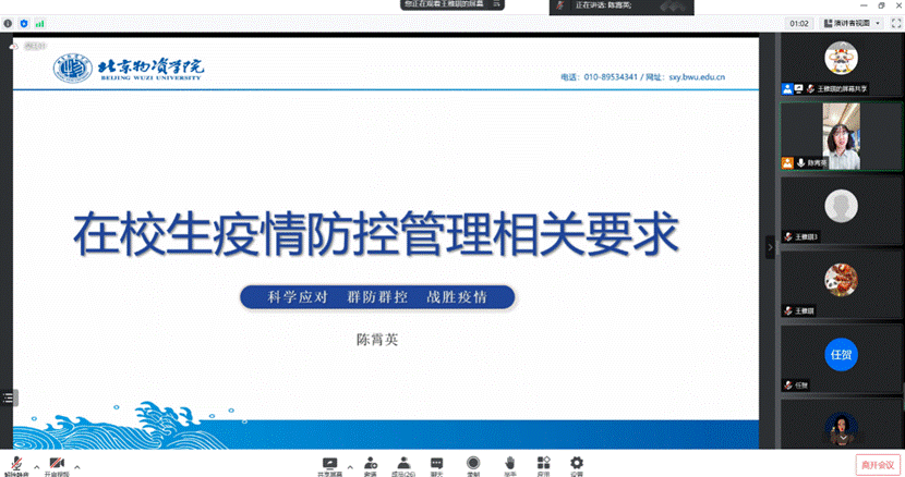 会议开始,辅导员王雅琪向大家介绍北京疫情最新相关情况,向同学们传达了北京市新型冠状病毒肺炎疫情防控工作新闻发布会主要内容及北京最新防疫措施,并讲解了近期因违反疫情防控规定引起的相关案例。