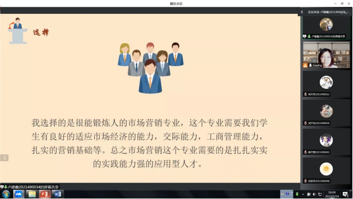 她对于全体同学经过大类分流选择到自己心仪的专业表示祝贺,并且邀请了五位同学分享了自己居家学习的情况以及对所选专业的解读。同学们表示即使居家学习也要“拒绝摆烂”,要专注并且有规划的迎接即将到来的期末考试。同学们也表示进入新专业学习后要认清学科知识和就业前景,要努力重视课堂学习,提前做好自己的未来规划,祝愿每位同学都有更好的将来。