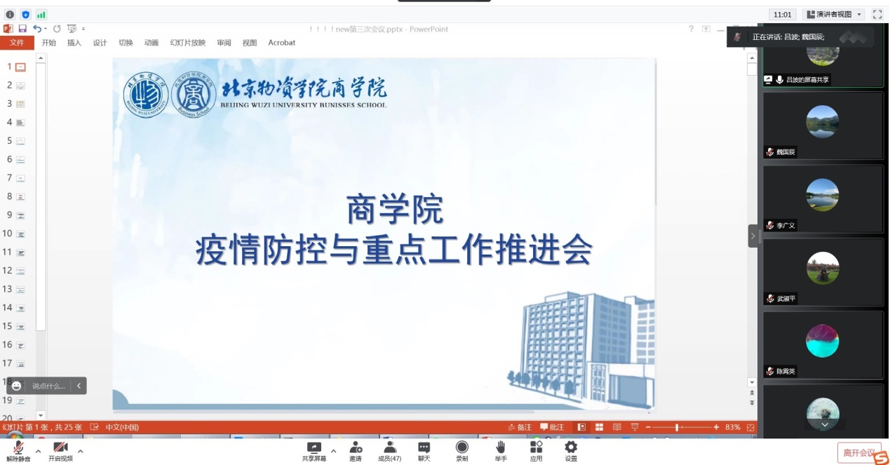 党委副书记陈霄英说明了近期班主任重点工作,要求班主任通过召开班级主题班会等多种形式,持续关心关爱员工,指导员工顺利完成本学期的学习和最后的期末考试等任务。她还介绍了员工疫情防控基本情况和做的主要工作,部署了下一阶段员工就业、毕业生离校等工作。
