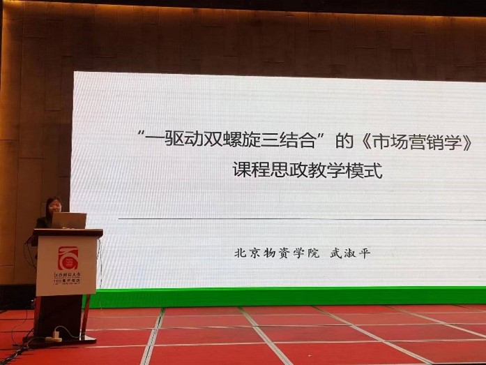 会议上,武淑平老师以《“一驱动双螺旋三结合”的市场营销学课程思政教学模式》为题,对课程思政教学中存在的问题进行了分析,并结合学情特点和课程特点,提出了以“员工中心、德业兼修、专创融合、练赛联动”理念为指导的“一驱动双螺旋三结合”课程思政教学模式,并分享了在该模式指导下开展的课程思政教学所取得的成效。