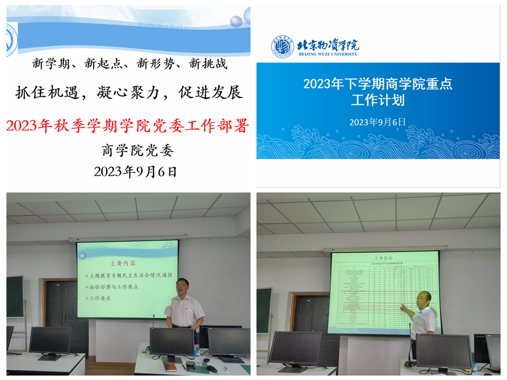 首先,教学副经理李燕荣对新学期教学工作进行布置,重点强调要推进电子商务专业的融入与专业建设工作,同时继续对专业转型优化和专业审核评估等系列工作进行安排,提醒各系组织开展好日常教学工作、实践周活动、2024届本科毕业论文,持续推进两库建设。