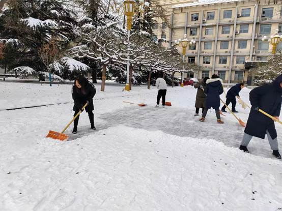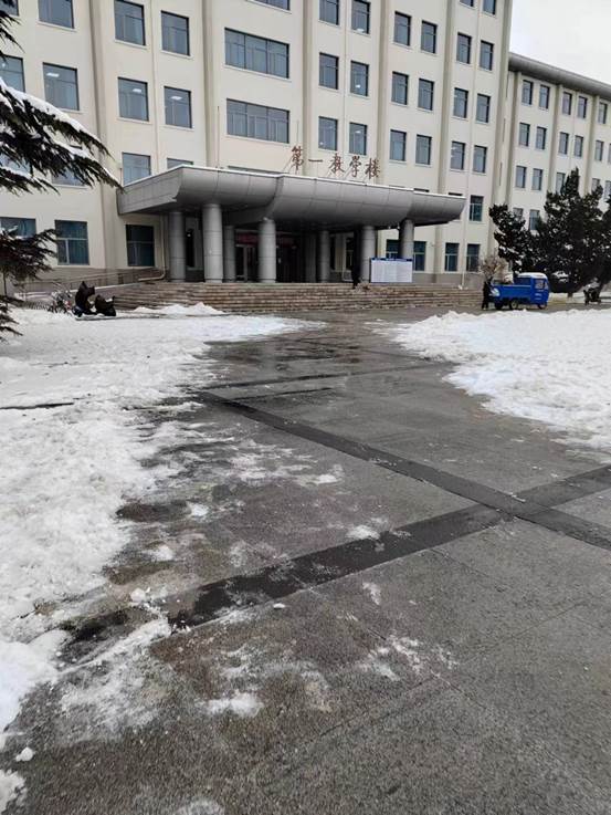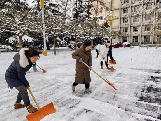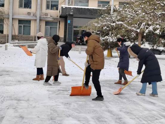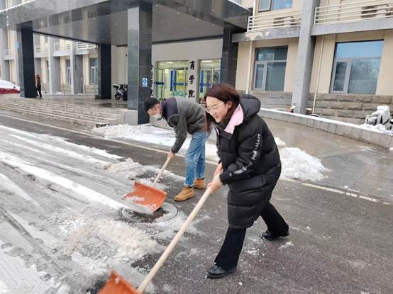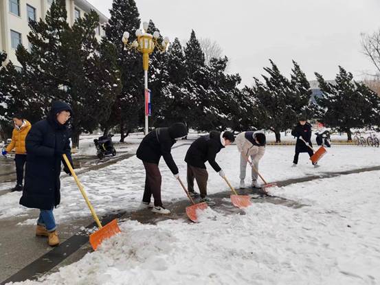 公司党委书记常娥、经理吕波第一时间带头组织党员师生开展铲冰扫雪;广大干部和教职工坚守岗位,落实工作责任;学工队伍密切关注同学们状况,做好预警,及时回应关切问题。