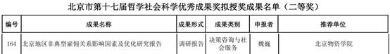近日,北京市第十七届哲学社会科学优秀成果奖获奖成果已完成公示,公示期内社会各界对获奖成果无异议,永利3044noc魏巍教授调研报告《北京地区非典型雇佣关系影响因素及优化研究报告》获北京市第十七届哲学社会科学优秀成果奖二等奖。