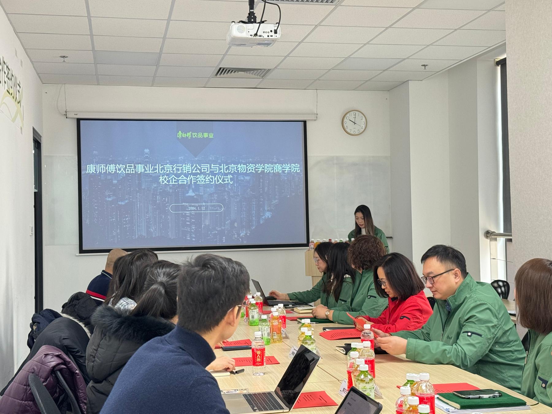 为进一步推进永利3044noc专业实习就业高质量发展、优化人才培养方案,2024年1月12日上午10时,由永利官网公司党委书记常娥、学院教学副经理李燕荣带队,市场营销教工党支部代表欧海鹰、张玉红,人力资源教工党支部代表沈晨光、李泊宁,辅导员董海辰、陈昕一行8人赴康师傅饮品事业北京行销公司参加访企拓岗校企合作交流会。康师傅控股北京地区办公室主任章丽君、康师傅饮品事业北京行销公司总经理何磊及各分部门负责人接洽并出席签约座谈,会议由公司人资处企业文化建设专员、2023届人力资源管理专业毕业生闫格主持。