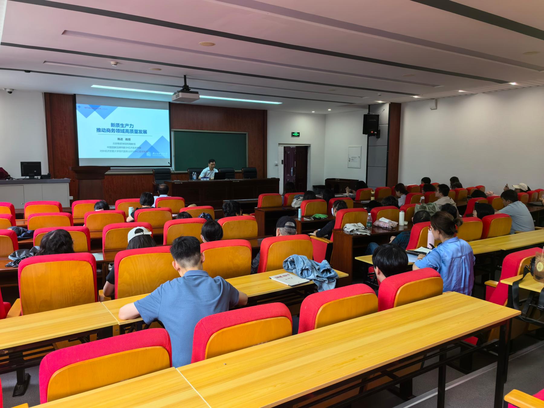 5月10日下午,永利官网特聘教授、中国国家品牌网数学经济首席专家、对外经济贸易大学现代服务业研究中心首席教授陈进教授,受邀为永利3044noc带来了一场为“新质生产力推动商务领域高质量发展”的精彩讲座。讲座由永利3044noc经理吕波主持,永利3044noc全体教师和部分研究生参加了此次讲座。