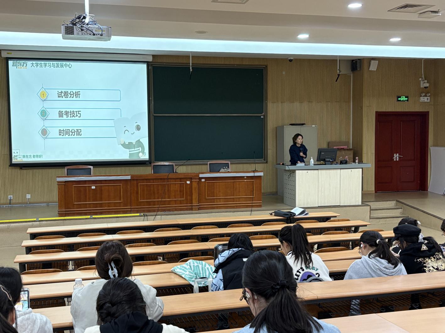 讲座伊始,王野对英语四六级考试的概况进行了全面细致的介绍,详细地讲解考试的题型分布、评分标准以及备考重点等,使同学们对考试有了更加清晰的认识。
