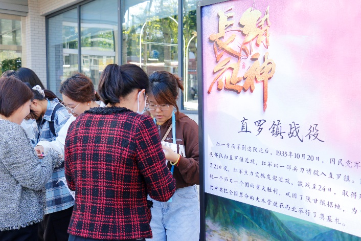 活动分两条线路,途中分别设置4个打卡点,教职工们收集贴纸、找寻信物。以此形式充分了解红军长征的艰辛与伟大,感受老一辈革命者坚定的理想信念。本次活动规划的路线设置2.5里,途中精心设置了宣传展板,让参与者在徒步过程中学习长征的相关历史知识,深入了解孕育了长征精神的历史事件,设身处地的体悟这一伟大精神的诞生。