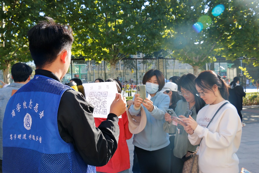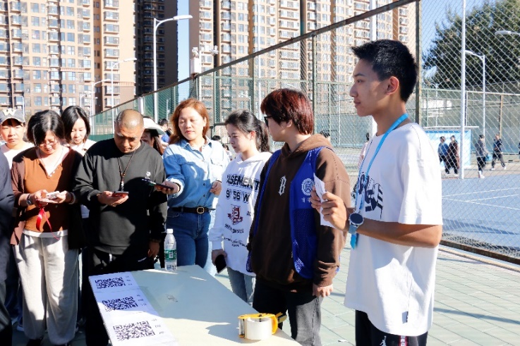 最终,公司两只队伍最终于操场看台前会师,以“问卷星”方式扫码答题,现场验证了徒步活动的优异学习成果,终点的信物红丝带随风飘扬,昭示着我们代代相传的红色基因。