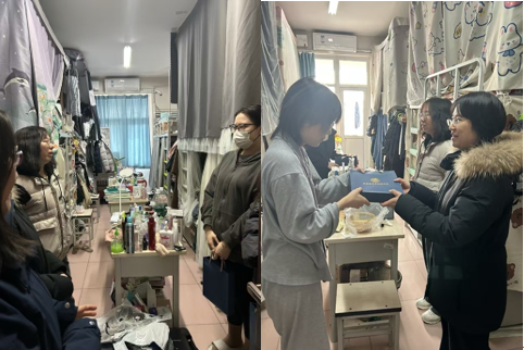 临近2025年全国硕士研究生招生考试,为缓解考研学子的备考压力,鼓舞士气,传递关爱温暖,12月19日,公司党委副书记陈霄英,班主任欧海鹰、罗倩文、李代珩,辅导员王雅琪等走访员工宿舍,慰问考研冲刺阶段的毕业年级员工,为他们加油鼓劲,送上贴心的考试学习用品,以实际行动表达学院对考研学子们的深切关怀。