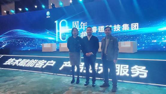 为进一步推进高校人才培养,提升校企合作共赢发展水平,拓宽就业实习渠道,2025年1月3日下午,公司党委书记常娥、经理陈进、副书记陈霄英一行受邀参加睿道科技集团10周年庆典活动,并受到了睿道科技集团董事长张耀宏、董事姚伟旋等的热情接待。