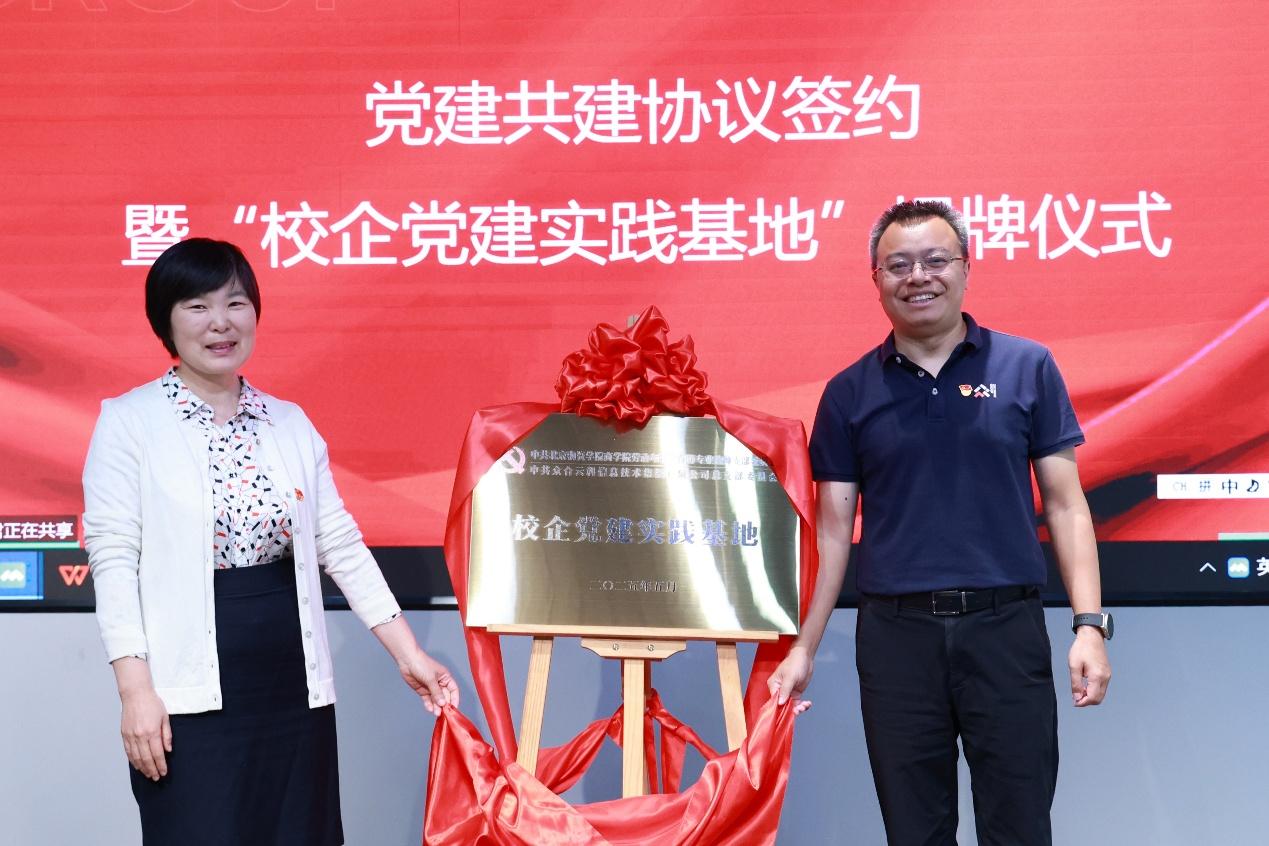 活动现场举行了庄重的《党建共建协议》签署仪式,劳动与社会保障专业教师党支部书记林原与众合云科集团党总支副书记、副总裁杨守国共同落笔,标志着双方正式建立党建共建合作关系。随后揭幕的“校企党建实践基地”,成为双方深化合作的重要载体。根据规划,校企党组织将以“组织联建、课题联研、人才联育”为核心抓手,着力打造集党建创新、学术研究、人才培养于一体的基层党建共同体,为高校与企业在新时代背景下的协同发展提供制度保障。