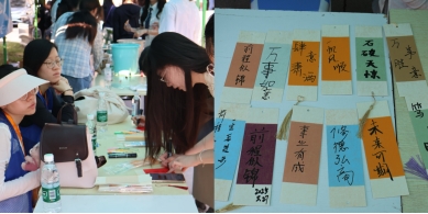 “青春筑梦,寄语新程”活动也热闹开展,同学们在摊位前领取书签,在小小的书签上,或是写下“前程似锦”的简短祝福,或是留下一段饱含深情的寄语,将对自己、对同窗最真挚的祝福凝于笔尖,完成祝福书写后,还能领取一份定制钥匙扣作为纪念,让这份美好的青春记忆常伴身边。