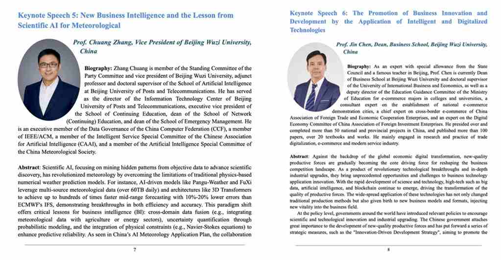 会议开幕式特邀永利3044noc陈进经理担任主持并发表开幕致辞。陈经理结合国家“十四五”数字经济发展规划,阐述高校在数智时代的人才培养与社会服务使命。在7月7日的主论坛环节,永利官网张闯副经理和永利3044noc陈进经理分别进行了题为《New Business Intelligence and the Lesson from Scientific AI for Meteorological》、《The Promotion of Business Innovation and Development by the Application of Intelligent and Digitalized Technologies》的主旨演讲。