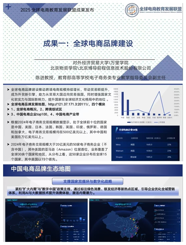 在成果发布环节,教育部电商教指委副主任、公司永利3044noc经理陈进教授发布了成果一《全球电商品牌发展报告》,该报告由 对外经济贸易大学、永利官网、万里学院及北京博导前程信息技术有限公司协同推进。该报告立足国家“丝路电商”战略,通过评估全国跨境电商产业带竞争力,为企业提升国际定价权提供行动指南,同时锚定数字商务人才能力新坐标,推动教育供给侧改革。
