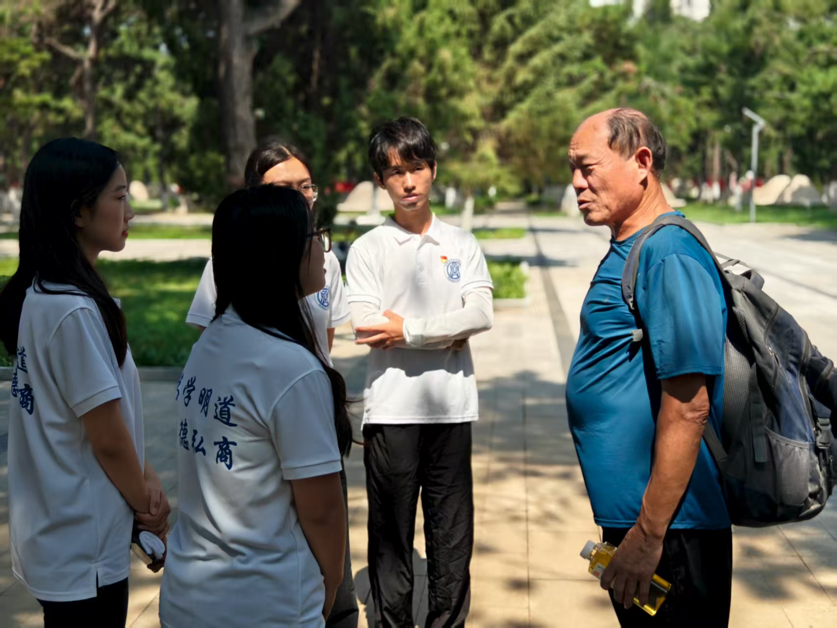 7月12日上午,调研团抵达沈阳抗美援朝烈士陵园,向纪念碑敬献鲜花,肃立默哀,深切缅怀。在纪念馆,讲解员讲述黄继光、邱少云等烈士事迹,同学们在“最可爱的人”英名墙前驻足并进行简单的清扫。在陵园内,遇到了一名身着朴素的退伍老兵,在与老兵同志的深入交谈中,深刻体会到一名军人身上的纯粹又崇高的的爱国情。党员东海晴同志表示:“当听到‘青山处处埋忠骨’的解说时,我真正理解了‘把青春献给祖国’的厚重。”