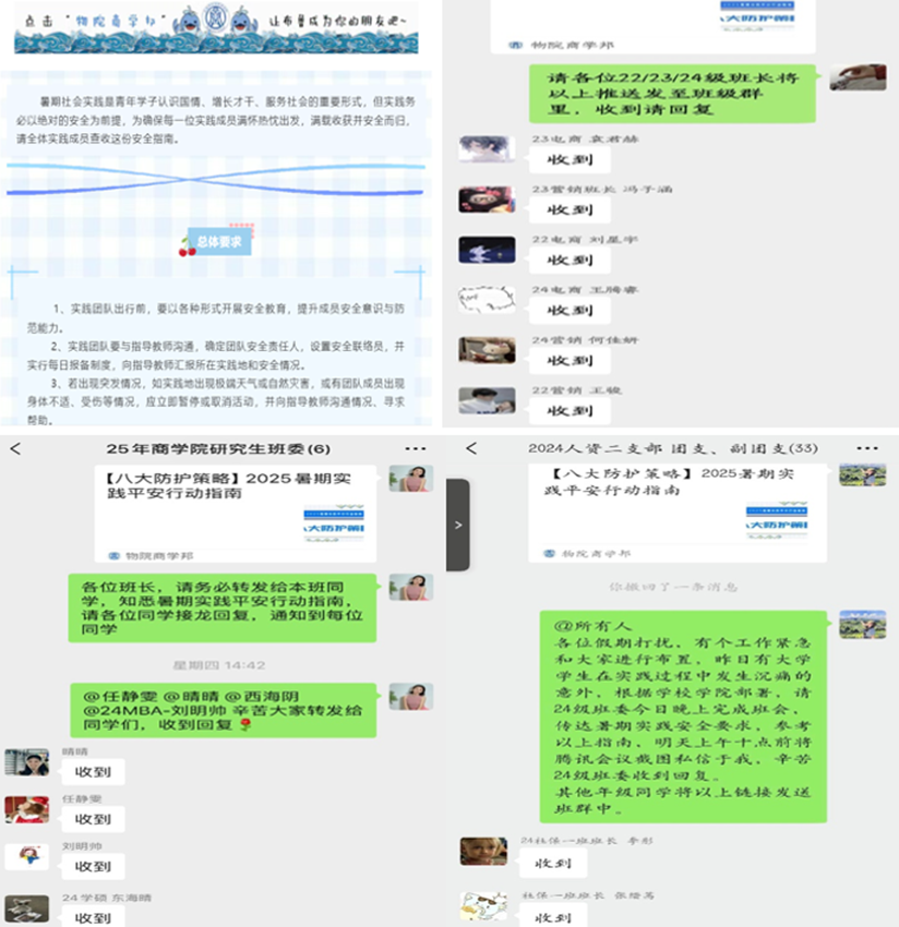 为确保每一位暑期社会实践成员满怀热忱出发,满载收获并安全而归,7月24日,永利3044noc第一时间通过官方公众号、班级群等多渠道发布《【八大防护策略】2025暑期实践平安行动指南》,系统梳理了涵盖人身安全、财产安全、交通安全、户外安全及突发事件处理等关键环节的注意事项,要求全体师生务必强化风险意识,将安全红线意识内化于心,外化于行,严格遵守安全纪律,确保“安全第一”理念贯穿实践全过程。