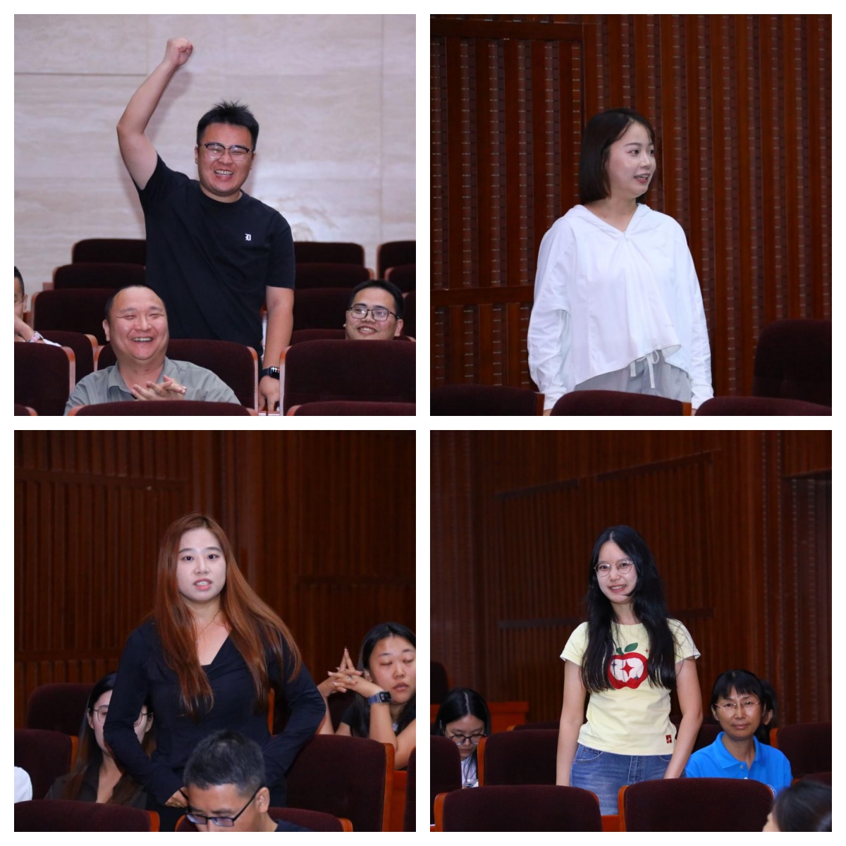 公司党委副书记闫慧凝老师以多个关键词与新生交流。“大我”即希望新生胸怀家国,心有大我,将个人成长与国家、行业发展结合,实现思维、视野与价值观的提升;“使命”则要求新生明确自身责任,积极配合学校工作,同时具备市场洞察力、创新能力与社会责任感;“共享”倡导新生珍惜多元背景的同学资源,加强与不同背景同学的交流,借助学院搭建的平台实现互助成长;“实践”强调将理论应用于实际,通过项目实践等活动解决复杂问题,希望同学们经过两年的学习最终成长为引领未来的商业力量。