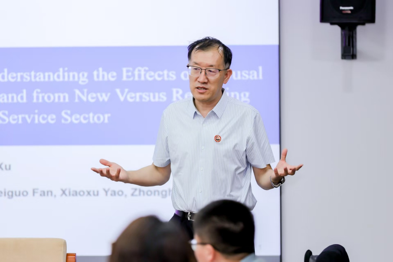 论坛活动分为两个环节。28日,八位主讲嘉宾在学术研讨环节分享了前沿研究成果,现场思想激荡,学术氛围浓厚。29日,为促进学界与业界的深度对话,参会代表与公司员工在美团研究院执行经理张林的陪同下,集体参访了美团总部。通过此次参访,学者与同学们近距离了解了美团作为生活服务电子商务平台的领先实践,尤其对其在即时物流、大数据赋能、数字化转型等方面的创新成果有了直观而深刻的认识,实现了理论与实践的有机结合。