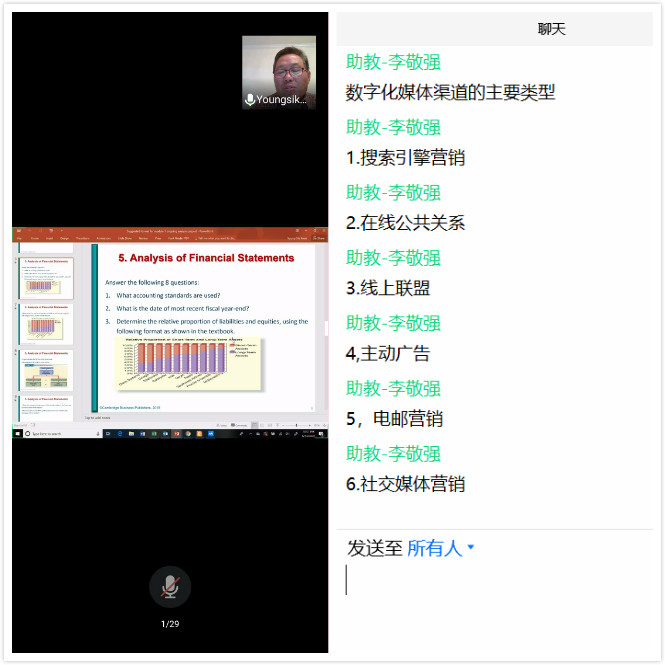 6月15日,又有3门暑期国际课程开课,分别是Financial Statement Analysis(财务报表分析),主讲教师是特拉华州立大学永利3044noc会计、经济和金融系教授兼国际项目主任Kwak教授,他是密西西比大学工商管理博士,主要研究领域包括公司金融、国际金融与贸易、财务报表分析、信用违约互换等;Digital Marketing(数字化营销),主讲教师是美国基恩州立大学(Keene State College)助理教授李坷(Ke Li)博士,她主要讲授消费者行为学、市场营销原理及管理学导论;Labor Market Theory and Global Practice(劳动力市场理论与全球实践),主讲教师为美国顶级文理大学Bucknell大学经济系专任助理教授林树明(Carl Lin)博士,他是美国乔治城大学经济学硕士,美国罗格斯大学经济学博士,同时兼任中国留美经济学会(CES)理事(2018-2019),世界银行咨询专家(2016),联合国大学(United Nations University)咨询专家(2019),德国劳动研究所(IZA)研究员,北京师范大学中国收入分配研究院研究员,台湾大学理论与计量研究中心研究员。