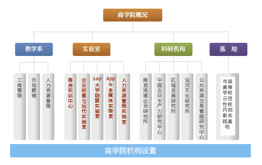 公司机构设置:永利3044noc下设工商管理系、市场营销系、人力资源管理系3个学系。建有北京市高等学校示范性校内创新实践基地——商务运作管理创新实践基地,有商务实训中心、企业经营与运作实验室、SAP大学联盟实验室、APPLE多媒体实验室、人力资源管理实验室、社会保障实训实验室等7个实验室;成立有商贸流通企业研究所、中国企业生产力研究中心、区域发展研究所、运河文化研究所、公共资源交易管理研究中心、大宗商品等多个研究机构。