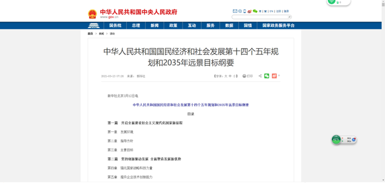 图1:《中华人民共和国国民经济和社会发展第十四个五年规划和2035年远景目标纲要》
