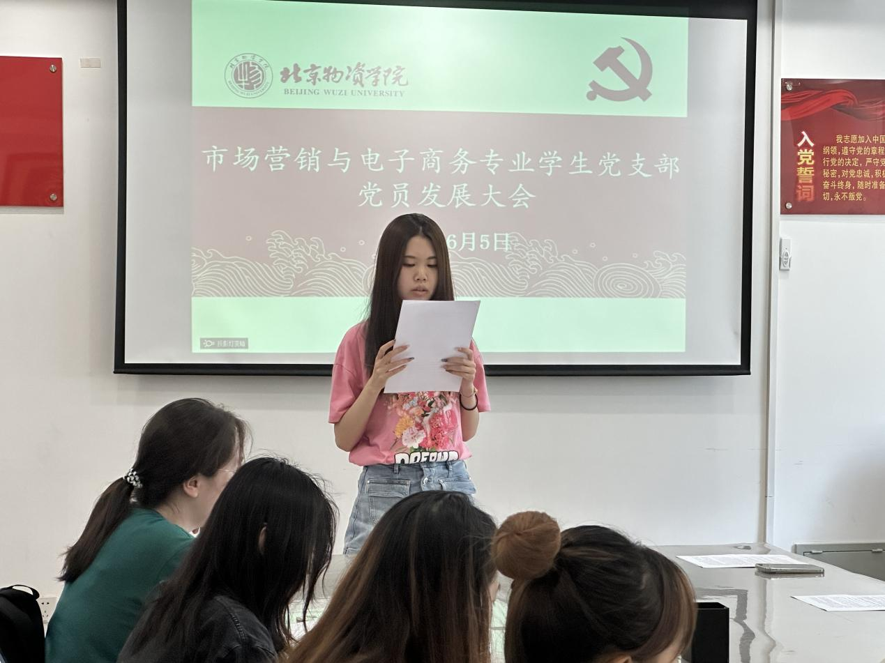 为加强党组织建设,增添党组织的新鲜血液,为党支部注入新活力,2024年6月5日,市场营销与电子商务专业员工党支部于永利3044noc410召开支部党员发展大会,会议以刘星宇、韩溪、周子城、王骏、李祺、马锐、安静怡、申奥琪共8名预备党员接收事宜为主题进行讨论,会议由党支部副书记余雪怡同志主持。党支部书记陈昕同志出席本次大会,永利3044noc专职组织员黄长松老师列席。大会严格根据《中国共产党发展党员工作细则》规定,按照基层党组织接收预备党员的流程,审议并表决通过了接收预备党员的相关事宜。