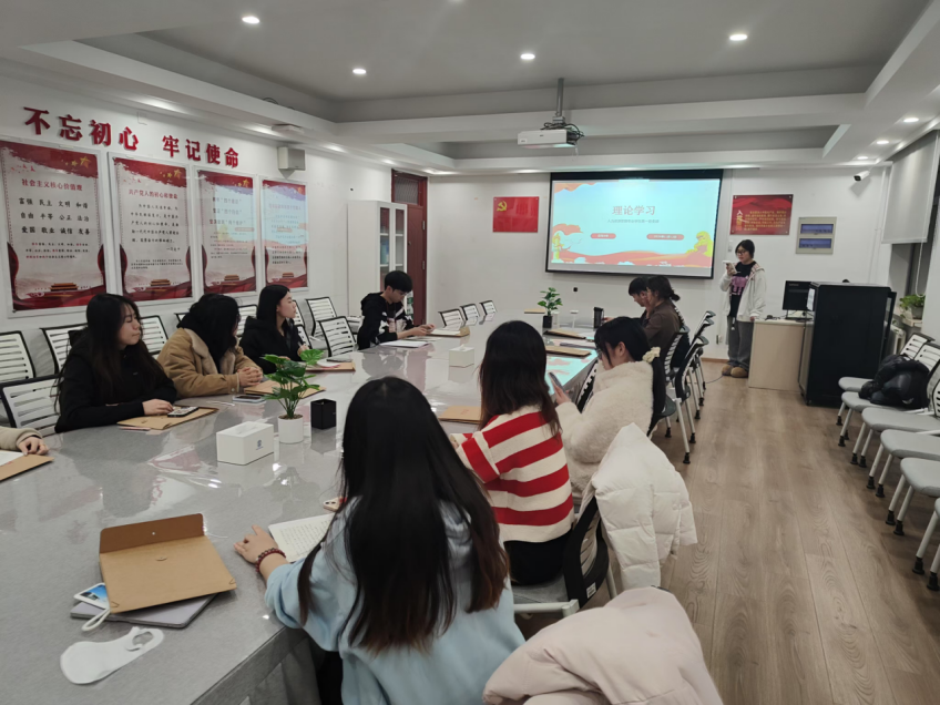 2024年11月12日19:00,党支部组织全体党员在科研楼410召开理论学习会。此次会议由人力资源管理专业员工第一党支部书记董海辰同志主持。本次理论学习会主要围绕二十届中央政治局第十四次集体学习精神进行学习。