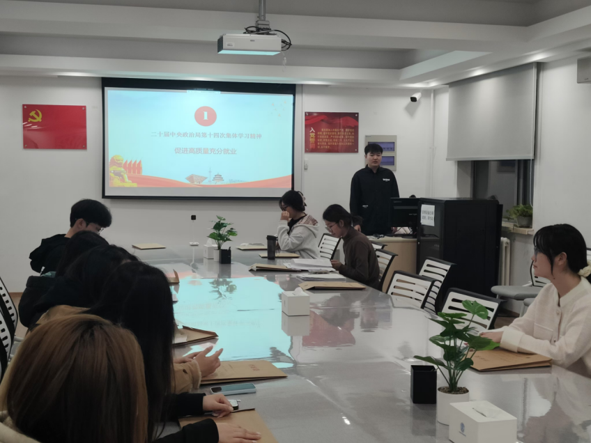 会议主持人董海辰同志对本次理论学习会的主题及学习内容进行简单陈述。本次理论学习会的主题是二十届中央政治局第十四次集体学习精神。就业是最基本的民生,事关人民群众切身利益,事关经济社会健康发展,事关国家长治久安,我们党对此历来高度重视。党和国家在中国特色社会主义道路上不断探索,对新时代对就业工作作出了部署。